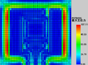 シミュレーションから接合工程後の変形の様子や応力・ひずみの分布が得られます。